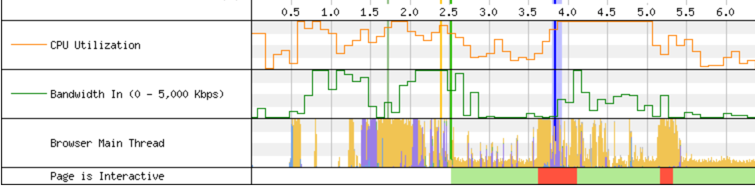 ### HTML > CSS > JS > Fonts > Images ??? When downloading resources browsers need to decide which resources are more equal than others. The basics is described here: HTML > CSS > JS > Fonts > Images, but in practice implementations have much more complex logic. Blocking scripts at the top are higher priority than blocking scripts at the bottom. Async scripts are lower priority than blocking scripts. In-viewport images are higher priority than out-of-viewport images. And this entire logic can vary between browsers and between browser versions. --- background-image: url(media/sketches/discovery.jpg) .block[  ] ??? So, if we look at our resource download dependency tree, the browser starts out by just downloading the HTML. That's the only URL it's aware of. --- background-image: url(media/sketches/discovery.jpg) .block[  ] ??? Then as the HTML is processed, CSS, images and scripts are discovered. --- background-image: url(media/sketches/discovery.jpg) .block[  ] ??? But in many cases, CSS and scripts load other resources. --- background-image: url(media/sketches/discovery.jpg) .block[  ] ??? Which then can load even more resources --- background-image: url(media/dependency_tree.jpeg) .block.down[ ## Dependencies! ] ??? And this creates a dependency tree that's deep and contains many nodes, each layer in that tree depends upon the downloading and processing of the layer above it. Now some resources are better at this than others: HTML and SVG can be processed as they come, so a resource dependency in their first 100 bytes doesn't need to wait until the entire resource is downloaded before the download can start. But, CSS and JS are not the same. They have to be processed in their entirety (and for CSS, all the blocking CSS has to be downloaed and processed) before any resource download can start. And that's not a bug, it's inherent to the way these formats work. And there's inherent tension here between flattenning the dependency tree which would help the browser load the page earlier, and the fact that humans write websites, and for the humans, it's often better to have smaller modules, which they can reason about without looking at the larger picture. So we have the old-fashioned CSS `@import`s and the newly fangled ES6 modules. They make writing and managing code dependencies significantly easier. They also make it harder for the browser, adding another layer to that dependency tree. --- background-image: url(media/sketches/discovery.jpg)  ??? And you can see that the bandwidth graph for that particular site has a lot of holes in it, during which the browser wasn't downloading anything. --- background-image: url(media/sketches/q.jpg) ??? problem #5 -- # Queueing ??? Those of you who travel often are probably familiar with that particular scene. A security line where the person at the top of line just now realized that they have to take out their laptop, all liquids, etc and is stalling well-prepared passangers behind them? Well, that's a real-life representation of --- background-image: url(media/sketches/q.jpg) # HTTP/1.1 `¯\_(ツ)_/¯` ??? Requests in HTTP/1.1 are going out over multiple connections (so you have multiple queues, often 2 at the day), but each connection could handle a single request at a time. --- background-image: url(media/sketches/q.jpg) class: bright .block[  ] --- background-image: url(media/sketches/q.jpg) class: bright .block[  ] --- background-image: url(media/sketches/q.jpg) class: bright .block[  ] ??? That takes many RTTs and make our resource download latency bound. Later on, browser added more connections, but that's the equivalent of opening more security stations. It's better, but doesn't solve the "head of line" blocking issue. --- background-image: url(media/sketches/contention.jpg) ??? Problem #6 -- .block.up[ # Contention ] ??? The problem of bandwidth contention happens when we have multiple resources both downloaded at the same time, but where: a) bandwidth is the bottleneck (which can often be the case in cellular networks) b) High priority content is downloaded alongside lower priority content In those cases, the lower priority content is slowing down the higher priority content (by competing with it on bandwidth). In HTTP/1.1, we have bandwidth contention by definition, and browsers somehow mitigated that by delaying the sending of low priority resources. But even in H2, where everything is downloaded on a single connection, contention is still there. It's no longer a problem between resources that are fetched on the same H2 connection, but is still very much a problem for resources fetched over other connections. So if I have a site that includes resources from multiple domains, contention is still very much an issue. --- background-image: url(media/sketches/bloat.jpg) ??? And finally, the seventh deadly sin of resource loading. -- .block.up[ # Bloat ] ??? The bigger your resources, the longer it would take for them to download, the more vulnerable they will be to bad network events along the way. So resource size certainly still matters. (15 minutes - 25 left) --- background-image: url(media/sketches/problems.jpg) ??? So we have (go over the problems)